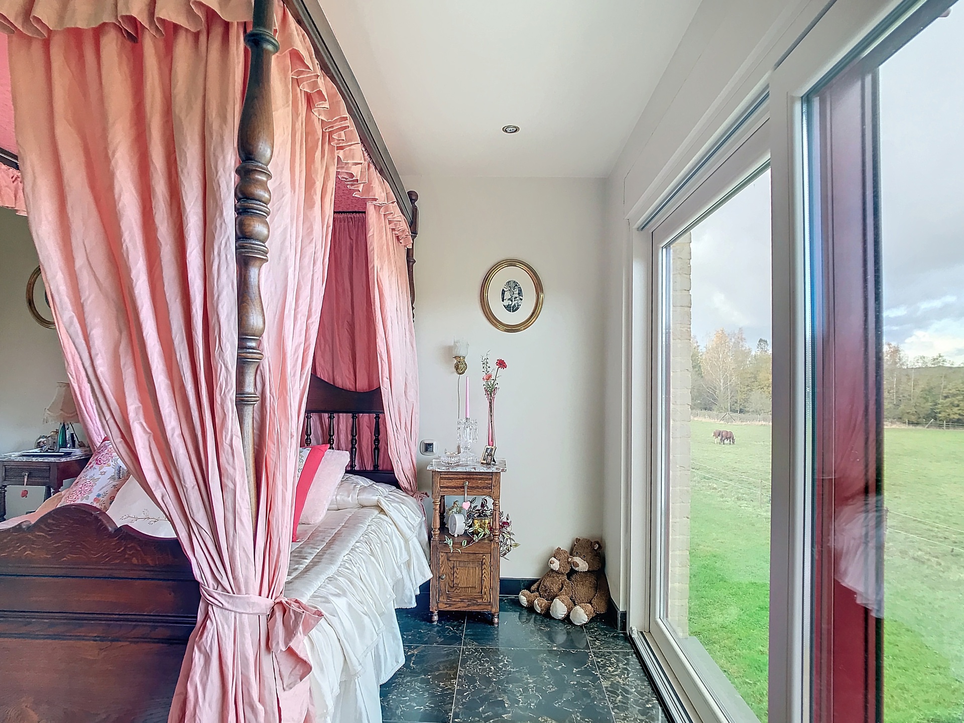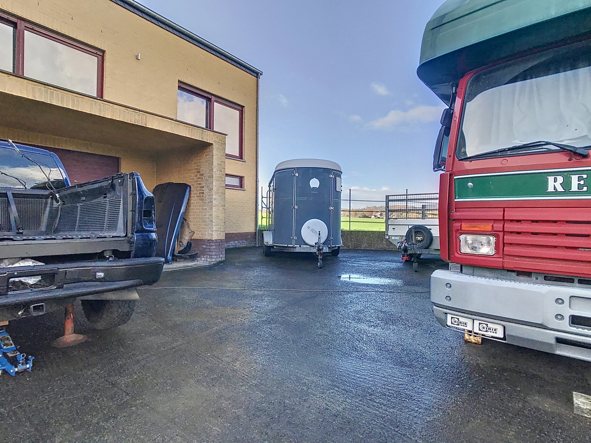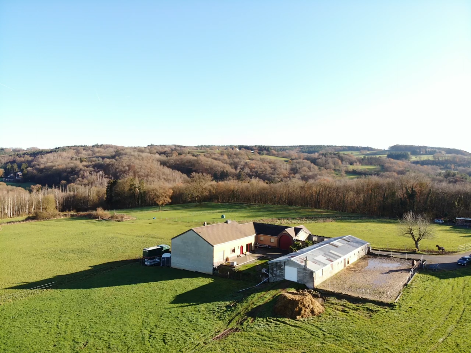 Offre àpd 995 000-€ Propriété équestre type Hacienda sur les plateaux de Harzé.Complexe unique pour le dressage, l'élevage ainsi que l'activité locative et pension pour chevaux.9 box dont 5 poulinières sur élastomère et bacs alimentaires.16 box à parachever et surface couverte de 76 m² pour stockage.Plans/permis pour l'implantation d'un manège de 50X20m. Deux ronds de longe, carrière, douches et bancs solaires, réserve d'eau de 75 000L, tracker solaire de 14 000 KW de production.Cheptel et machines en acquisition possible.Superficie boisée de +/- 3500m², permettant l'implantation de TINY HOUSE afin d'accueillir les propriétaires de chevaux. Villa récente, lux/confort, cuisine full équipée, 3 chbres. Garages 6 véhicules.VISITE : 0475/49.22.20.